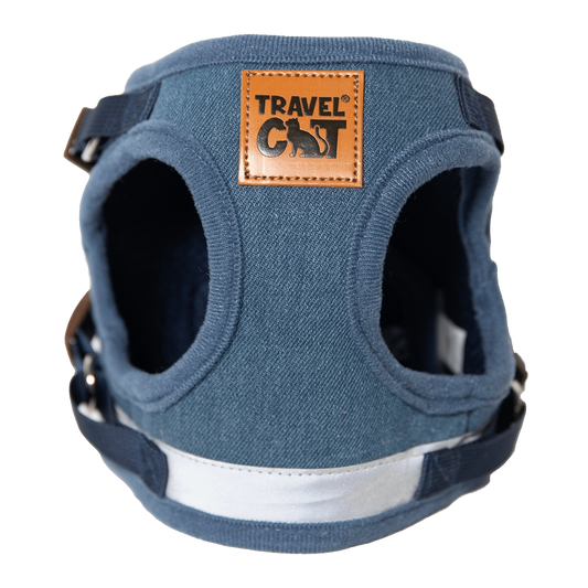 TRAVEL CAT The True Adventurer Reflective Harness and Leash Set, Jean Jacket