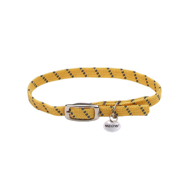 Keep your cat safe with the ElastaCat® Reflective Safety Stretch Collar with Reflective Charm. Its elastic design expands and releases your cat if entangled. Your cat will also be more easily visible with the collar’s reflective material and charm. The reflective strands are woven right into the collar, which adjusts up to 10”. The collar’s buckle is completely adjustable and can be inserted anywhere on the collar for the perfect fit.