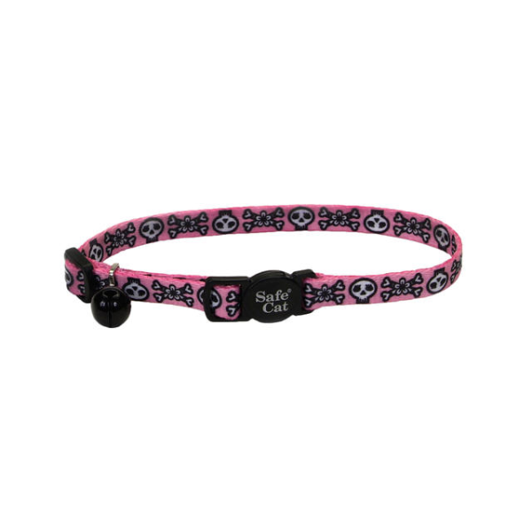 COASTAL Safecat Fashion Breakaway Collar 12", Pink Skulls