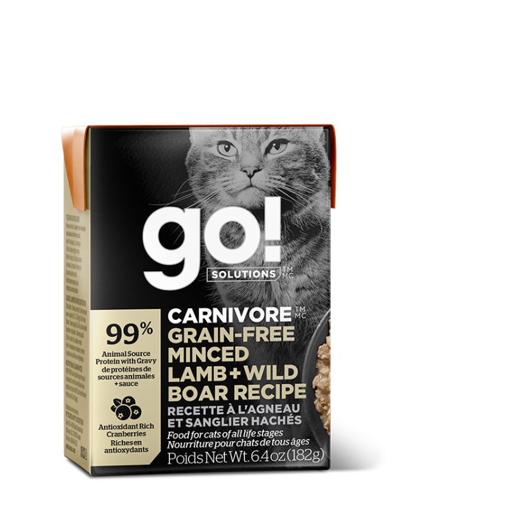 PETCUREAN GO! SOLUTIONS Carnivore: Minced Lamb and Wild Boar in Gravy Tetra, 182g (6.4oz)